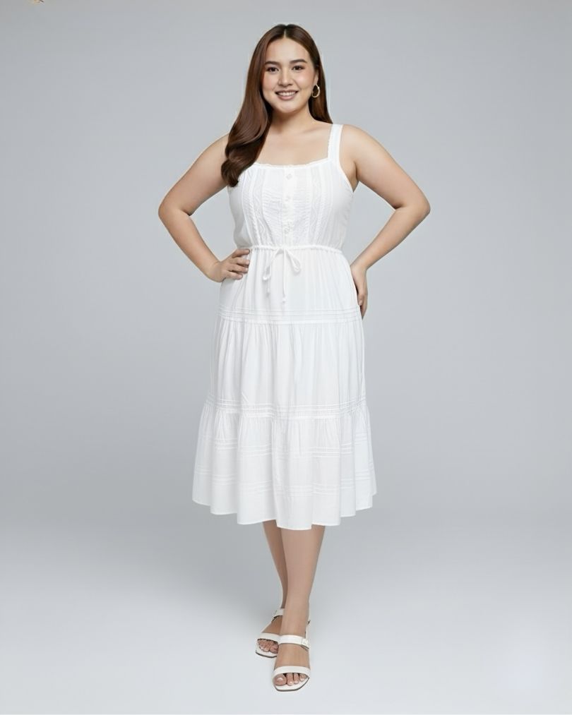 Vestido Midi Blanco de Tirantes con Detalles Boho